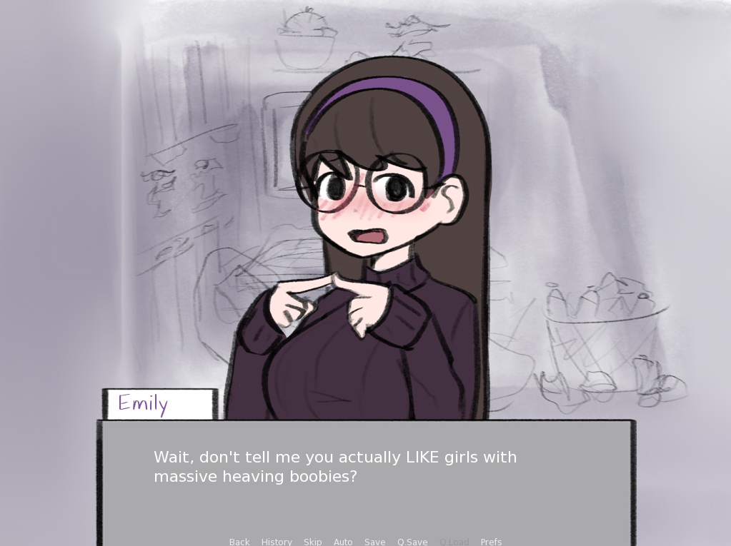 The visual novel BASHFUL BEAUTY, GLASSES GIRL featuring Emily, the girl with big glasses and also other things that are big!